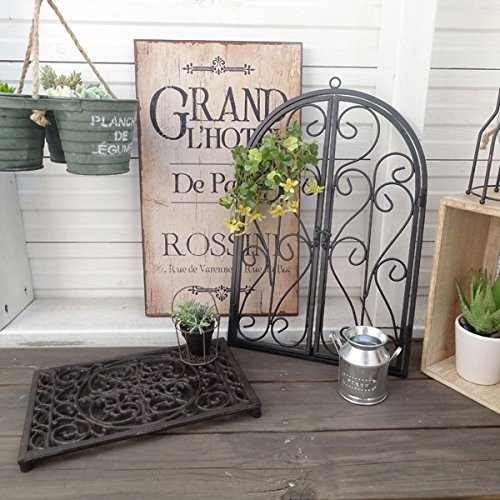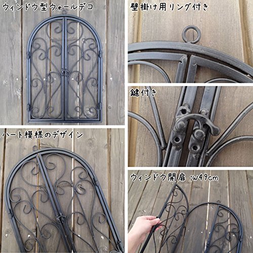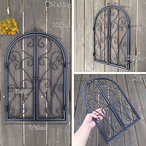 アイアンのウィンドウ型ウォールデコ。 まるでそこに素敵な窓ができたかのような演出ができます。 壁に閉じたままかけてもお洒落ですし、開いて空間にカードやお花やグリーン、リースなどを飾っても素敵です。 扉を開くと置いて飾ることもできますが、少し前かがみになります。 グリーンと一緒に飾っていつもの空間にお洒落をプラス。窓枠から見えるグリーンも素敵です。 ディスプレイの仕方によって様々な空間演出ができそう。あなただけの素敵な世界を作ってください。