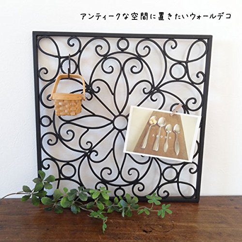 ブラックアイアンのSサイズのスクエアパネル。 曲線と直線を取り入れたヨーロピアンスタイルのエレガントなデザイン。 アンティークの似合う空間にさりげなく置きたいインテリア雑貨です。 Sサイズなのでどんな場所にも飾りやすいです。 壁に飾ると壁面のアクセントに。 置いて飾ることもできるので、玄関やリビングの棚に小物と一緒に飾ったり。 パネルにカードなどをクリップなどで挟んで飾るのも素敵です。