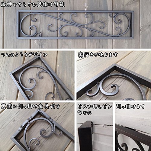 小型のデザインウォールデコ。 クラシカルなデザインのウォールデコです。 長方形の形に、つたのようなデザインの上品な雰囲気です。 そのまま飾ってもいいですが、ドライフラワーやプリザーブドなどをくっ付けて飾ってもかわいいです。 カラーはブラックなのでアイボリー、ホワイトなどの壁には見栄えがします。 ウォールデコは壁に飾るだけで、お部屋の雰囲気を変え、個性的な空間を演出します。 壁面装飾で、空間をセンスアップしてみては! 裏側に壁掛け金具付きです。 縦横どちらでも壁掛けできます。 カラーはブラックとグレイの2色ございます。