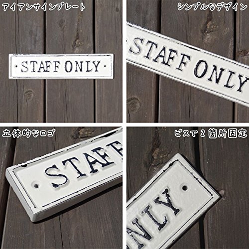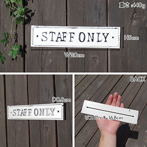 アンティークな雰囲気のアイアンのサインプレートです。 シンプルなデザインにシャビーなアイアンがいい雰囲気です。 STAFF ONLYのプレートです。 シンプルなドアもサインプレートを付けるだけで、見違えるほどお洒落になります。 お客様が来た時もわかりやすい目印になります。 店舗でのご使用はもちろん、ご自宅などのご使用もオススメです。 アンティークな雰囲気がお部屋のインテリアを素敵に演出してくれます。 他にもデザインございます。