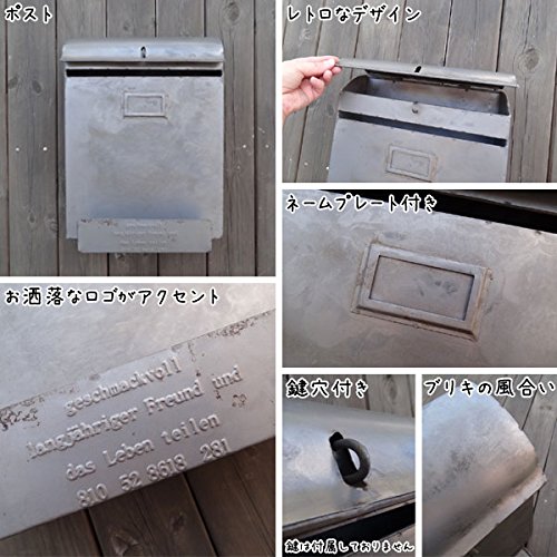 まるでヨーロッパのアンティークショップで見つけたようなレトロなポストです。 A4サイズの書類が入る大きいサイズの便利なポスト。 この商品はブリキの表面を特殊な化学分解にて溶かした上にコーティングをし、 今までにない表面の風合を出しています。 そのような効果により商品には最初から錆やムラがあります。 通常のブリキよりも錆びやすく、お使い頂くほどに味わい深くなる特質があります。 とってもお洒落なアンティーク調のポストを置いているだけで毎日が楽しくなりそう! インテリアとして室内でもお使いいただけます。 あなたのアイディアでより豊かなインテリアライフを!! 同じシリーズのサイズ違いもあります。 ※手前部分に新聞をはさめます。 ※裏側にひっかけるフックがございます。
