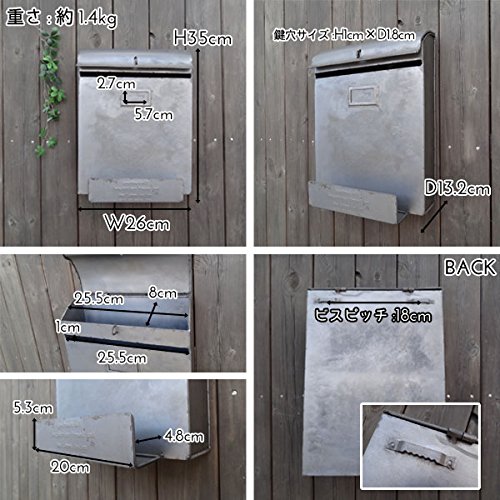 - サイズ:W26cm×H35cm×D13.2cm ポスト穴:W26cm×H8.2cm 裏面フック:2ヵ所 ビスピッチ:16.5cm 重さ:約1.4kg