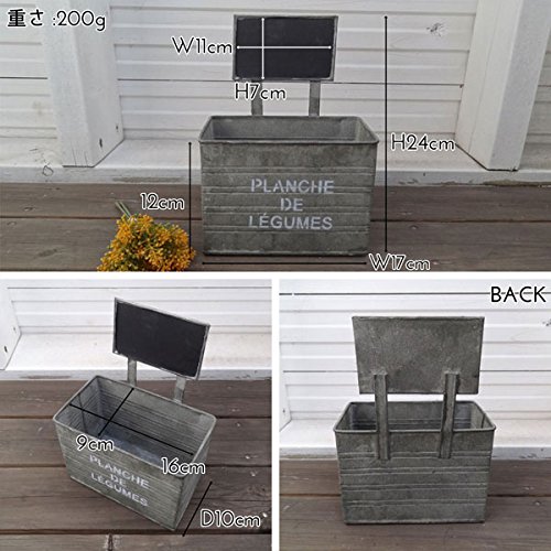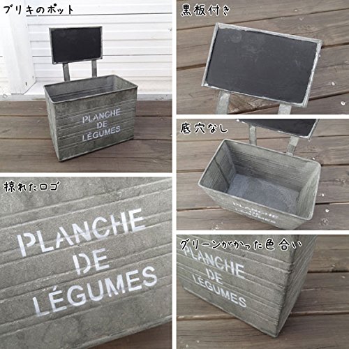 アンティーク風のブリキポット。 使い込むうちに味が出てくるブリキ素材に、ホワイトの掠れたロゴがとってもキュート。 PLANCHE=菜園のこと。植物を育てながら飾るのにピッタリの商品です。 黒板が付いているのでチョークで名前を書いておくことができます。 お気に入りの場所に植物を育てながら飾ってください。 スタイリッシュなイングリッシュガーデン、ナチュラルなカントリーガーデンには お洒落な小物が似合います。ハイセンスなガーデン作りに役立ちます。 室内のインテリアとして、小物入れとして使用しても素敵です。 他にもいろいろな形とサイズの商品があるので一緒に飾るといい雰囲気です。