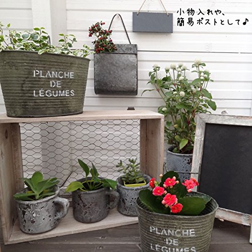 アンティークな雰囲気のブリキの壁掛けポットSサイズです。 BROCANTE=美しいガラクタという意味のアンティーク加工に深みのある商品です。 深みのある錆感と使い込まれた美しさがあります。 植物との相性も抜群です。グリーンが映えます。 小物入れにしたり、簡易なポストとしても使えます。 穴をあけて植物を直接植えても素敵です。 いろいろと用途を考えるのが楽しいハングポットです。