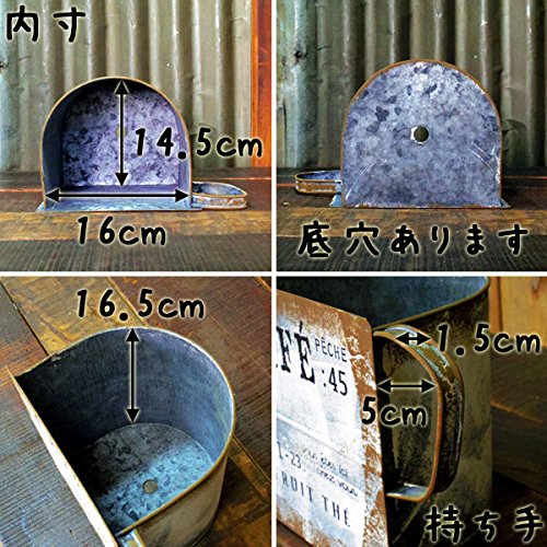 - ※写真内の小物、植物等は商品に含まれません。 ※写真と実際の商品と色、サイズ、質感が若干異なる場合がございます。 ※ペイントの掠れ、歪み、傷、剥がれ、錆などは商品の特徴であり不良ではありません。 ※底穴廻りの焼き割れ、キレ等はご了承下さいませ。 ※直射日光、屋外でのご使用の場合色落ち、変色する事があります。 ※アンティーク風に加工されて仕上げられています。