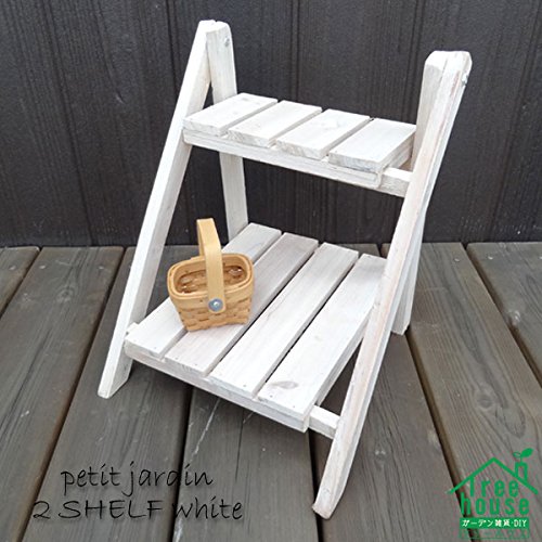 アンティークな雰囲気の可愛い二段の木製フラワースタンド。petit jardin 2段シェルフ ホワイト 41020