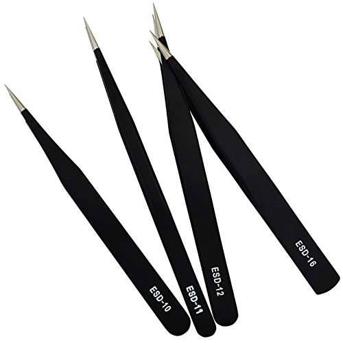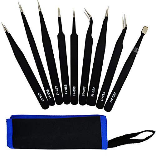 cnomg ピンセット 作業工具 精度高い 静電防止 ステンレス製 布巻き込み式收納 9本セット