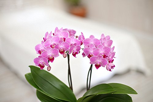 - ピンク系ミディー胡蝶蘭【チュンリー】の鉢植え<シルバー鉢(4.5号)・2本立ち・母の日ピック付き>をお届けいたします。