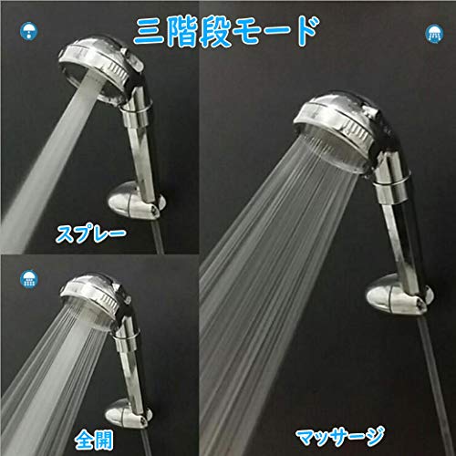 - 【3段階モード】本シャワーヘッドは「マッサージ、レイン、ジェット」3段階のモードに設計され、モード切替えボタンで簡単に切り替えることができます。使用箇所や個人のシャワー好みによる調節が便利です。