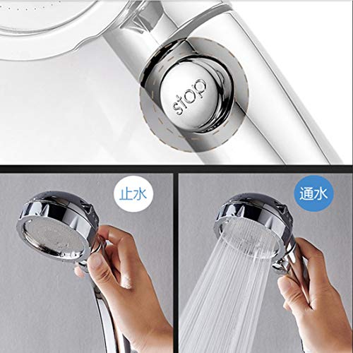 - 【手元で止水・ストップボタン】水圧が低くてもシャワーに勢いをプラスすることができる節水低水圧タイプで、手元でお湯の止水もON/OFFで切り替えられます。約0.3mmの細い水流と均等配列した高密度なやわらかい肌あたりで、浴びたいところに水流を集中できる水幅スリムなシャワーです、耐熱温度:60℃,シャワーヘッドのネックにストップボタンがあり、手持ちシャワーの時、手元のスイッチでシャワーの途中でも、ワンタッチで通水と止水が可能です。わざわざ蛇口まで止めに行く必要がありません。目を閉じたままでも操作できる、止水通水が自由自在、お湯を無駄にしない。