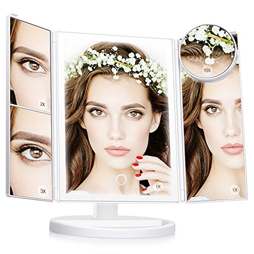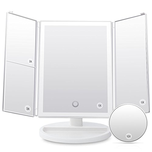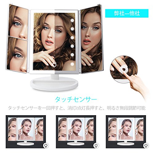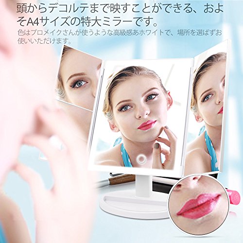 - 【三面鏡&10倍拡大鏡付き】三面ミラーだからお顔の正面だけでなく、横顔や顔全体をしっかり確認できます。2倍/3倍拡大鏡により毛穴の状態やアイラインのズレもチェックでき、細やかなメイク・スキンケアをサポート。さらに、取り外し可能な10倍拡大鏡も付属して産毛や穴までしかっりと写るので、無駄毛の処理することができます。