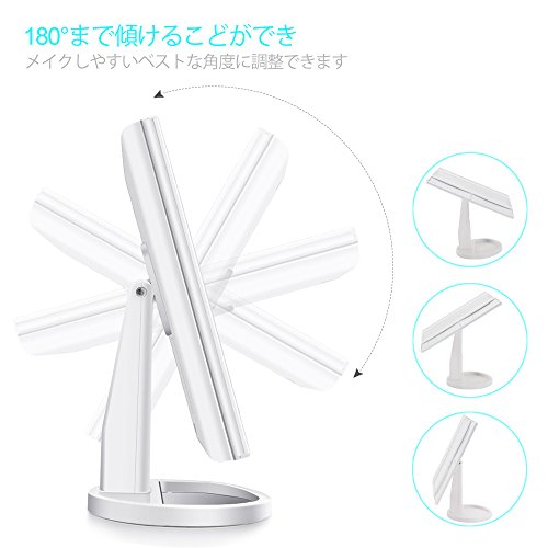 - 【180度無段階調整&丈夫なスタンド】鏡の本体は上から下まで、自由に無段階回転できます。メイクアップする時に、自分の頭と目や鼻の高度によってベストな角度に調整できます。丈夫で、安定なスタンドを付きて、後ろに傾けても倒れ可能が無いです。台座には小物を置けるスペースがあり、ブラシやアイラインなどが転がらずに便利。