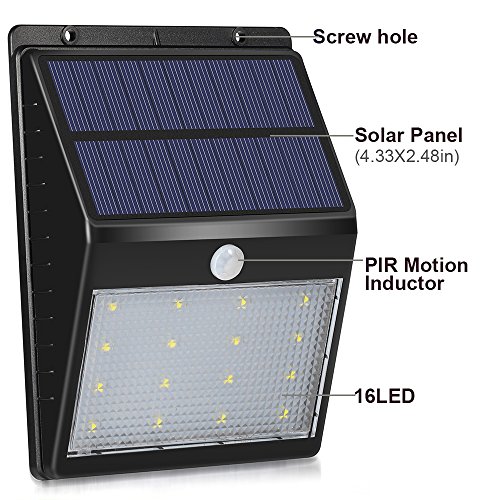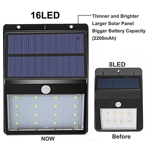 ソーラーライト 16LEDウォールランプ 人感センサーライト 夜自動点灯 常夜灯&防犯灯 IP64生活防水 屋外照明/軒先/段階/庭先/玄関など対応 (黒い)