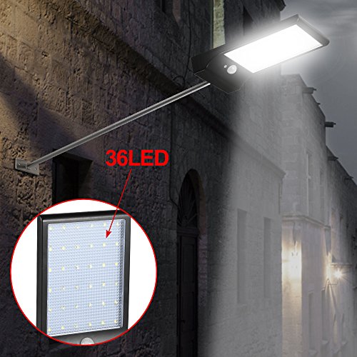 ソーラーライト ワイヤレス 36LED人感センサーライト 人感&明暗センサー 自動調光 ソーラー充電式 LEDライト 夜間自動点灯 屋外照明/軒先/壁掛け/庭先/玄関周りなどに対応 防水/防災/防犯 (1個)