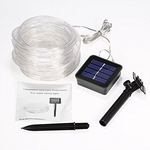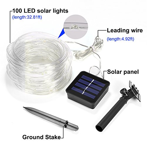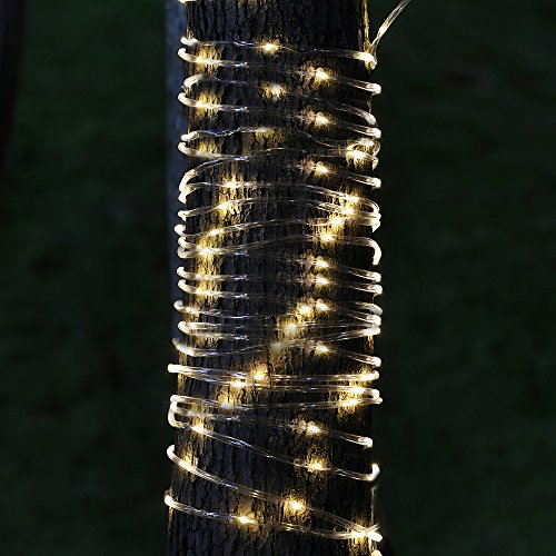10m/100LED イルミネーションライト ストリングライト ロープライト ソーラーLED飾り ガーデンライト チューブライト 8種類の点滅モデル ポータブル 結婚式、学園祭、誕生会、ハロウィーン、ハロウィン、クリスマス、パーティー、などイベント大活躍(電球色)