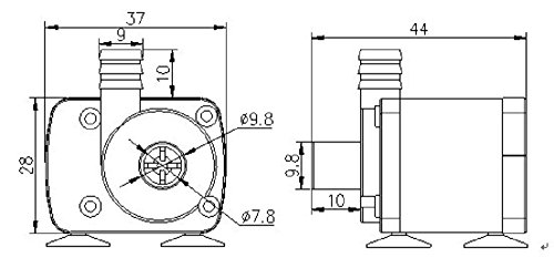 - 口径:取水口外径9.8M、内径7.8MM、排水口外径9MM、内径7.6MM。