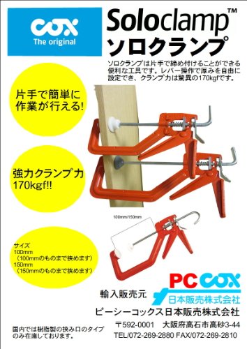ソロクランプは片手で締め付けることができる便利な工具です。レバーの操作で厚みを自由に設定でき、クランプ力は脅威の170kgfです。