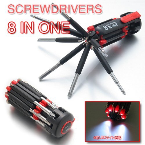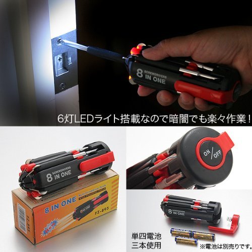 - 暗闇でも楽々作業♪7種類のドライバーと、6灯LEDライト搭載の多機能ドライバーです。