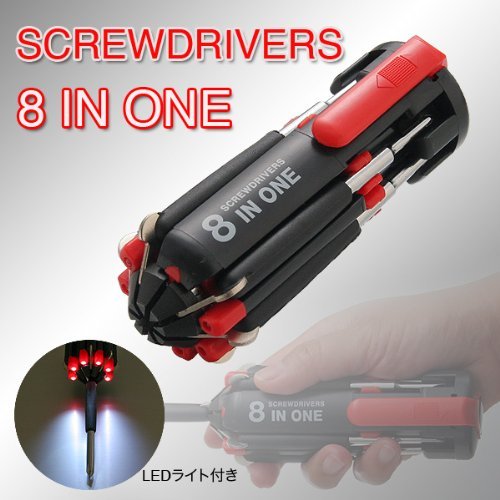 6灯LEDトーチライト付 8in1多機能ドライバー 折りたたみ式