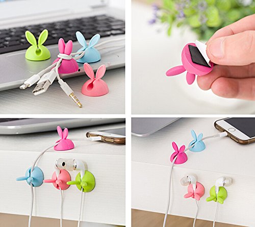 4本バニーイヤウサギケーブルクリップコードワイヤーコイルオーガナイザータイホルダードロップ