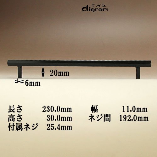 アイアン取っ手&つまみ /GL0016 スティックブリッジ・ハンドル(ブラック)1個/全長230mm
