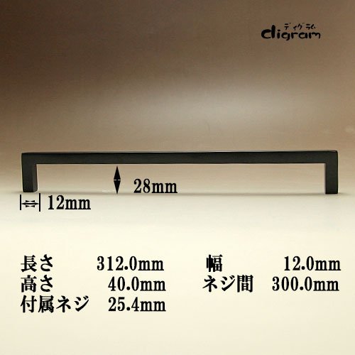 アイアン取っ手&つまみ /GL0051 スティックアングル・ハンドル全長312mm(ブラック)1個