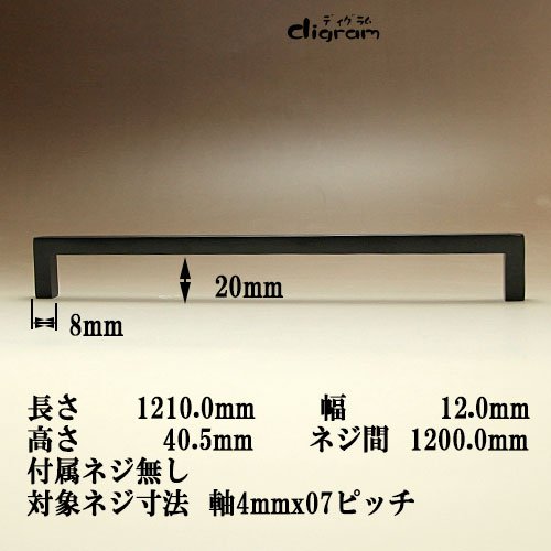 アイアン取っ手&つまみ /GL0057 スティックブリッジ・ハンドル(ブラック)全長1200mm1個