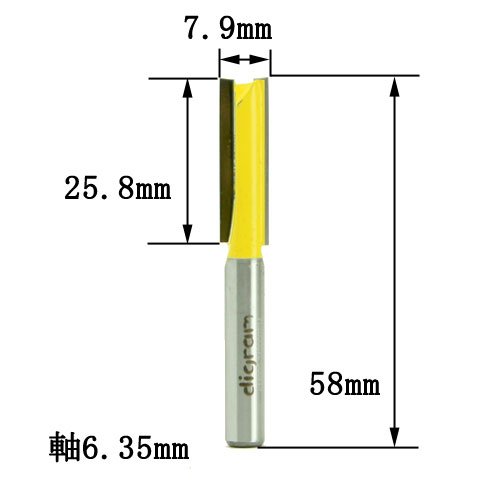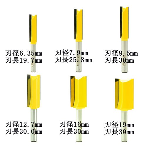 ☆最も基本のルーター&トリマービットですね、溝堀、大入れ加工など沢山の使用方法があります、用度も多いので出来るだけ沢山のサイズを揃えると便利に使えるアイテムですよ。