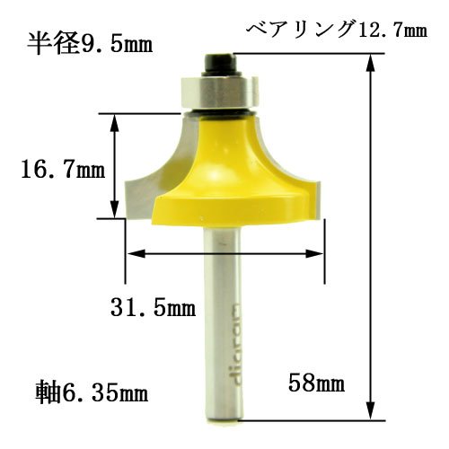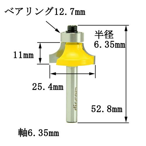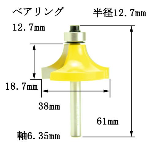 ☆ルータービットの軸軽は、1/4shank(6.35mm)です、お間違えの無い様にお願いします。