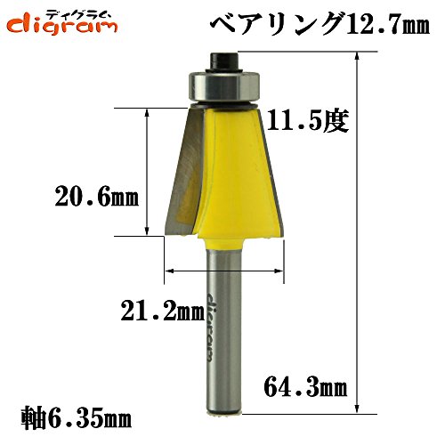 トリマー ビット 斜角面 11.5度 1/4軸 ( 刃径 21.2mm ) Microtungsten carbide 【dm12742】