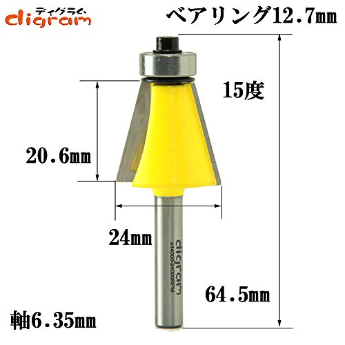 トリマー ビット 斜角面 15度 1/4軸 ( 刃径 24mm ) Microtungsten carbide 【dm12743】