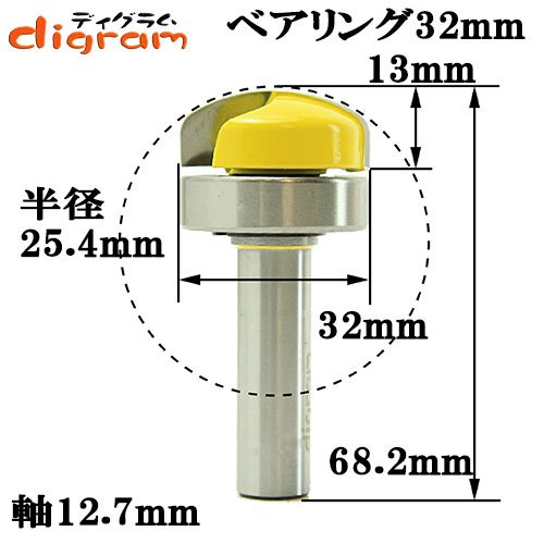 ☆ルータービットの軸軽は、1/2Shank(12.7mm)です、お間違えの無い様にお願いします。(太い1/2Shankは、安定した作業が出来ます)