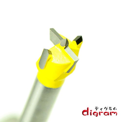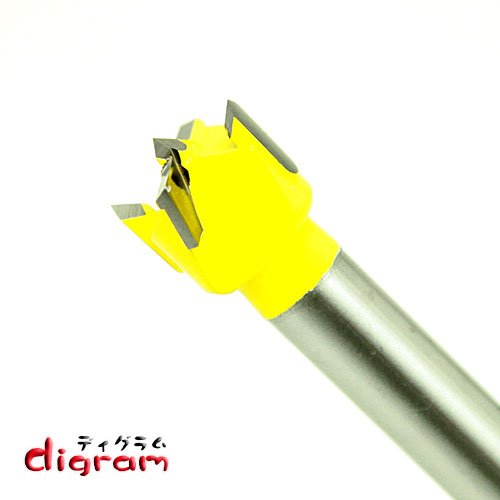 ディグラムオリジナルフォスナービット ( Forstner Bit) ☆ルータービット工場にて製造しました高品質なフォスナービットです。 ☆鋼部分はdigramルータービットと同じ材質を使用し木材加工に特化しています。 ☆刃径14ミリから80ミリまで27サイズ揃えました。 ☆一般的なフォスナービットの全長は80ミリ前後ですが、当店オリジナル商品としての特徴は、刃径14ミリから40ミリまで全長120ミリと 長く作ってあります、これにより軸の長さが足りなく最後まで加工ができないという事はありません。 (刃径45ミリ以上は危険が伴うため全長87ミリに作ってあります) ☆ホームセンターなどで販売されています一般的なフォスナービットは、刃の部分も軸と同じ鉄で鋼などを使用せず鉄を鋭利に 研磨されているだけなので、耐久性に弱く広葉樹(ハードウッド)などを加工するとすぐに刃先がなくなり削れなくなってしまいます。 ☆当店のフォスナービットは、ルータービット同様に一本の棒からCNC機にて削り出し鋼をロウ付けし研磨・刃だし・仕上げ加工を 行っている為、軸ブレはなく切れ味の持続と耐久性に優れています。 注意 インパクトドライバーには対応していません、チャック付きをご利用ください。 電気ドライバーでもご利用頂けますが、刃径30ミリ以上は危険が伴いパワーも必要なためボール盤にてご利用ください。