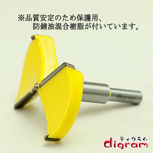ディグラムオリジナルフォスナービット ( Forstner Bit) ☆ルータービット工場にて製造しました高品質なフォスナービットです。 ☆鋼部分はdigramルータービットと同じ材質を使用し木材加工に特化しています。 ☆刃径14ミリから80ミリまで27サイズ揃えました。 ☆一般的なフォスナービットの全長は80ミリ前後ですが、当店オリジナル商品としての特徴は、刃径14ミリから40ミリまで全長120ミリと 長く作ってあります、これにより軸の長さが足りなく最後まで加工ができないという事はありません。 (刃径45ミリ以上は危険が伴うため全長87ミリに作ってあります) ☆ホームセンターなどで販売されています一般的なフォスナービットは、刃の部分も軸と同じ鉄で鋼などを使用せず鉄を鋭利に 研磨されているだけなので、耐久性に弱く広葉樹(ハードウッド)などを加工するとすぐに刃先がなくなり削れなくなってしまいます。 ☆当店のフォスナービットは、ルータービット同様に一本の棒からCNC機にて削り出し鋼をロウ付けし研磨・刃だし・仕上げ加工を 行っている為、軸ブレはなく切れ味の持続と耐久性に優れています。 注意 インパクトドライバーには対応していません、チャック付きをご利用ください。 電気ドライバーでもご利用頂けますが、刃径30ミリ以上は危険が伴いパワーも必要なためボール盤にてご利用ください。