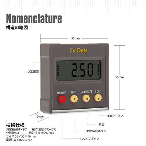FstDgte デジタルレベル,デジタル角度計 傾斜計 水平器 LCD液晶画面 (ABS樹脂タイプ)