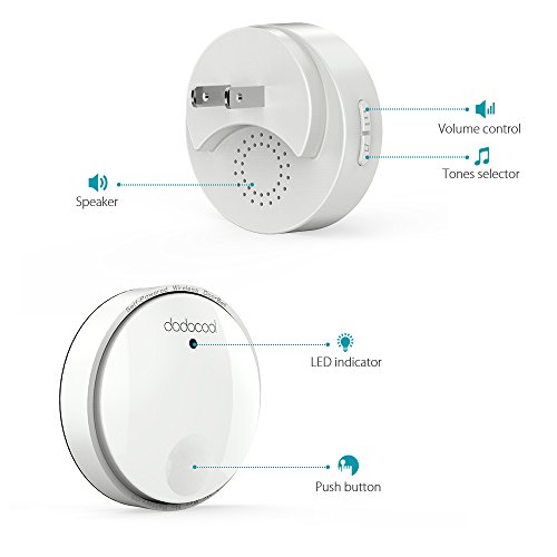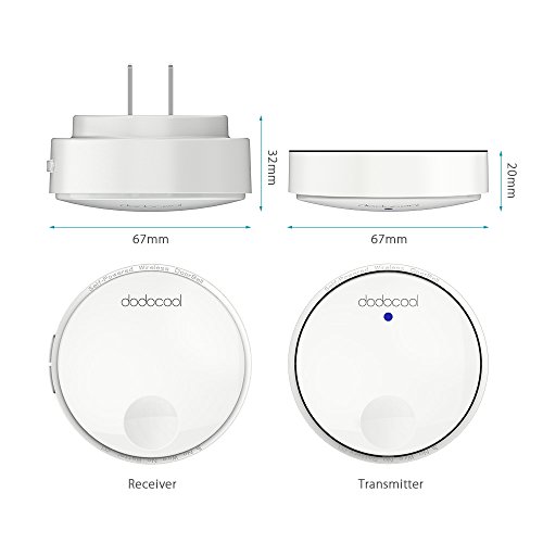 dodocool ワイヤレスチャイム 無線 防水チャイム ワイヤレスドアベル ドアベル 呼び鈴 呼び出し鈴 チャイムセット メロディー38種類 受信距離262フィート LEDライト 防犯機能 電池不要 (受信機1個 送信機1個)