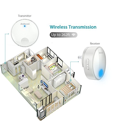 - 【ワイヤレス伝送】ワイヤレスドアベルは高感度受信機採用で、電波の飛距離は屋外見通し,最大262フィートの無線範囲をサポートします。受信機の中継機能を利用して、最大786フィートの伝送距離に達します。