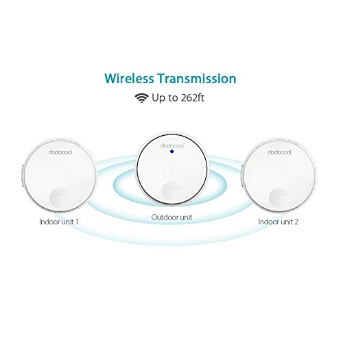 - 【ワイヤレス伝送】ワイヤレスドアベルは高感度受信機採用で、電波の飛距離は屋外見通し,最大262フィートの無線範囲をサポートします。受信機の中継機能を利用して、最大786フィートの伝送距離に達します。
