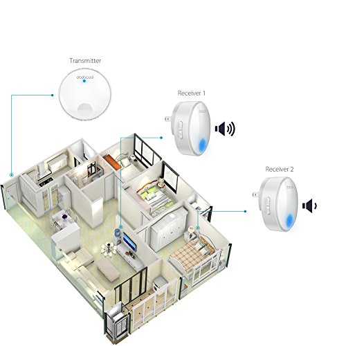 dodocool ワイヤレスチャイム 無線 防水チャイム ワイヤレスドアベル ドアベル 呼び鈴 呼び出し鈴 チャイムセット メロディー38種類 受信距離262フィート LEDライト 防犯機能 電池不要 (受信機2個 送信機1個)
