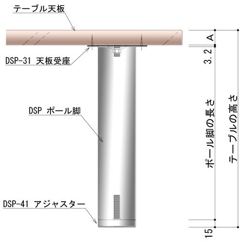 ●商品名:テーブル脚 DSPポール脚 ※1本単位 ●品番:DSP-1/60800 ●寸法:ポール径:60mm ポール高さ:800mm ボルト:1/2(4分)ボルトに対応いたします ●材質:スチール製 ●表面仕上:クロームメッキ ●付属品:この商品に付属品はございません ●お勧めの組合せ:天板受座:DSP-31/100 100mm (C)丸受座 (S)角受座 アジャスター:DSP-41B/CR60 60mm クロームメッキ(樹脂底) ●備考:・1本単位の販売となります ・アジャスターや天板受座などは別にお求めください