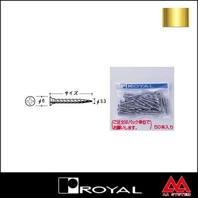●商品名:ロイヤル Aタッピング AT-P 30mm Aゴールド ※1パック50本●品番:●品番:ROYAL-AT-P-30G ●サイズ:3.3φ x 30mm (※ビス頭 6.0φ) 用途 木下地専用 適合ビット 二番 ●表面:ゴールド ●付属品:この商品に付属品はございません ※1パック50本入りの価格です。