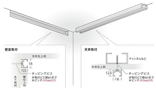 ●商品名:HPI ピクチャーレール 16mm幅 ●品番:HPI-040S ●寸法:16mm x 12.5mm t=1.5mm ●長さ:3000mm ●材質:アルミ押出型材 ●表面:アルマイトシルバー 設置方法 面設置 埋込設置 兼用タイプ 許容荷重 15kg 注意事項 ※上記許容荷重は300mm以内のピッチでビス固定した場合のレール1本あたりの許容荷重となります ※上記荷重はレール自体の強度であり、ビス及び取付部の強度は考慮されておりません ※レール端部は強度保持のため、端から50mm以内にビス固定してください 推奨ビス 3.5mm~4mm ※ビスは付属されておりません ●付属品:この商品に付属品はございません レールキャップ HPC-040S HPC-040BS ●備考:・ピクチャーレールには、予めビス穴は明いておりませんので、 取付の際にはビス穴を明けていただく必要がございます ・取付には壁面などの強度を確認してご使用ください、強度不足の場合には必ず補強をしてください ●配送の都合により、カットして分割での発送となります。 ※個人宅への配送以外はカット無しでの発送も可能です。