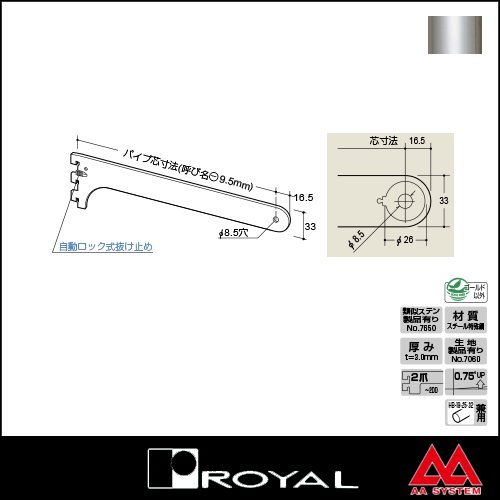 e-kanamono ロイヤル ハンガーブラケット(内々用) A-78S 270 クローム