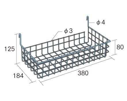 ●商品名:小物バスケットフック 黒塗装 ●品番:NPD-NF/11BK ●材質:スチール製 ●表面仕上:黒塗装 (粉体塗装) ●フックサイズ:380mm x 184mm x 125mm 対応パネル NPD-1(6x13フレーム) NPD-2(13x13フレーム) 共用 ●付属品:この商品に付属品はございません