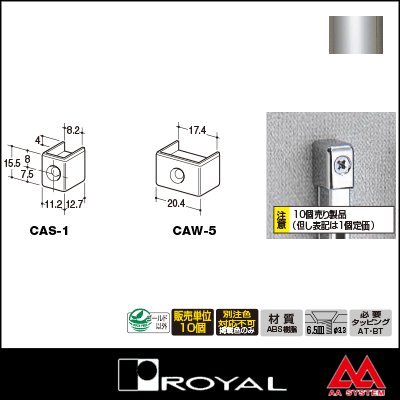 ●商品名:ロイヤル チャンネルサポート断面保護キャップ(直付け施工用) CAS-1 クローム ●品番:ROYAL-CAS-1C 対応サポート ASF-1 / BSF-02 ビス穴 3.3φ穴-6.5φ皿 必要タッピング Aタッピング(AT-P) Bタッピング(BT-P) ※別売 ●材質:ABS樹脂 色 クロームメッキ ●付属品:この商品に付属品はございません ※10個セット販売の商品です
