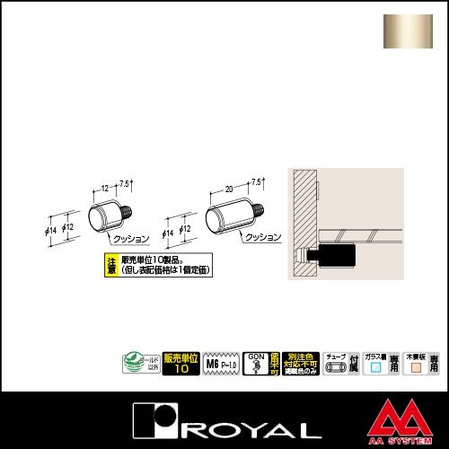 ●商品名:ロイヤル ガラス棚板用ネジ付ダボ12 NDC-12 20mm ニッケルカラー ●品番:ROYAL-NDC-12-20N ●サイズ:ダボ径:12mm ※クッション外径:14mm ダボ●長さ:20mm ※ネジ●長さ:7.5mm ネジ M6 x P1.0 対応棚 ガラス棚専用 ●材質:真鍮 色 ニッケルカラー ●付属品:この商品にはチューブが付属されております ※10個セット販売の商品です・こちらは木妻板専用の商品となります。 ・ガラス押え GONのご使用は出来ません。