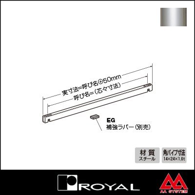 商品名 ロイヤル エクセルバー EB-24 850mm クローム 品番 ROYAL-EB-24-850C サイズ 850mm ※芯-芯寸法です 実寸法は+50mm サイズ指定が可能です 角パイプ 14mm x 24mm x 1.6t 材質 スチール 表面 クロームメッキ 付属品 この商品に付属品はございません 納期 通常1?2営業日ほどで発送可能です 返品・交換 こちらの商品は返品・交換が不可となります 備考 ・切断加工費は価格に含まれておりますので、ご希望のサイズをご指定頂けます。 ・ポール脚は4本セットでの販売となりますが、1台組み立てるためにはエクセルバー(EB-24)が4本必要になりますので、ポール脚とは別にお買い求めください。