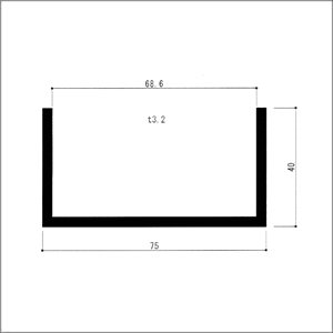 e-kanamono アルミチャンネル 3.2x75(内寸68.6)x40x5000mm(4M+1M) 生地(表面処理なし)