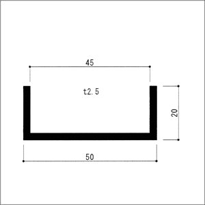 e-kanamono アルミチャンネル 2.5x50(内寸45)x20x4000mm(2M+2M) アルマイトシルバー