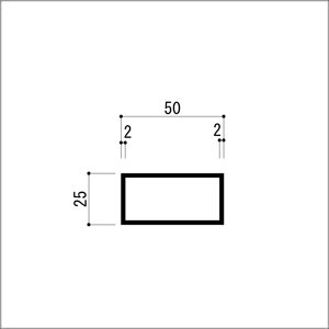アルミ不等辺角パイプ 2.0x25x50x4000mm ステンカラー